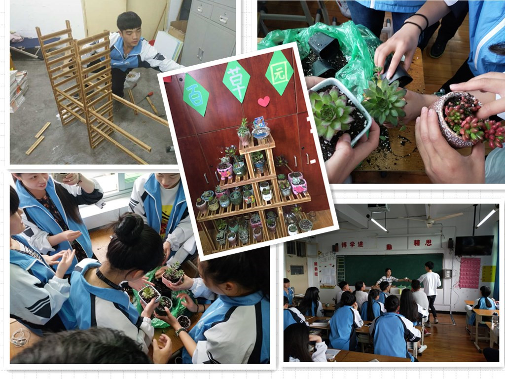 活动过程中,在周老师的带领大家迅速行动起来,副班长胡佳琪同学开始搭建植物架,生活委员梁佳怡开始裁剪卡纸,团支书余顺同学忙碌着教班级同学们如何种植绿色盆栽植物……同学们用各自勤劳的双手画出了属于自己的那一抹绿色,没一会儿,教室里就传来了欢呼声“你看,这是我的多肉,快快快,快贴上我的名字……!”