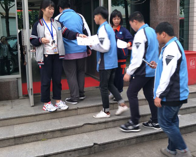 4月17日下午,高级汽营1601班的同学将他们亲手绘制的“地球保护宣传单”,在育才楼大厅分发给了来往的同学,希望用他们自己所设计的图画和文字,来呼吁更多的同学自主加入到保护环境、保护地球的队伍当中来,让大家意识到随手所丢垃圾的地方,或许可以长出一朵小花,随意排出污水的地方,也许可以汇成一片蓝海,随手所砍树木的地方,或许可以形成一座森林。