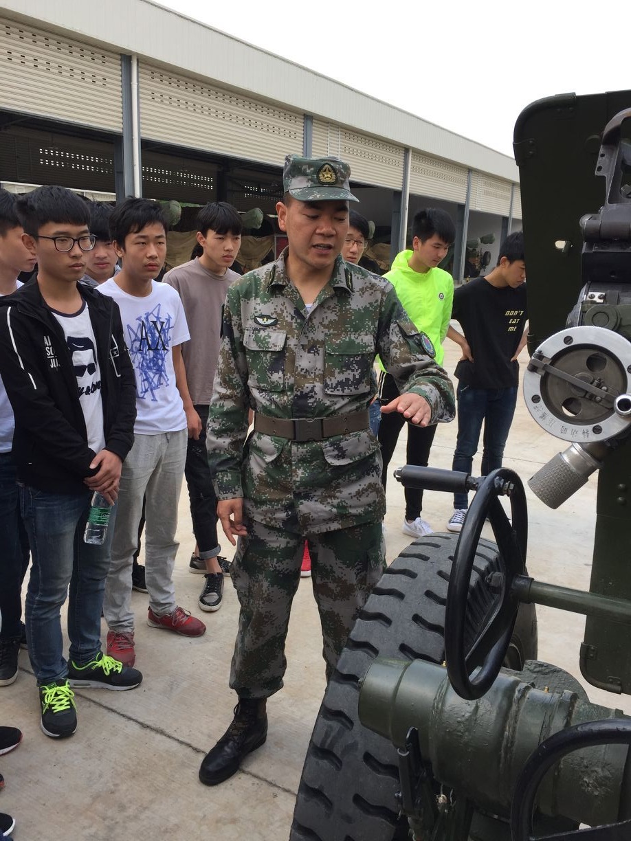 早上9点,老师与同学们在学校集合后出发了。一路上,同学们在讨论着心目中部队生活的样子,还有那些传说中听过却没有见过的枪炮。还没进入营区,门口的哨兵和一道道的路障就给大家带了了莫名的严肃感。进入营区,部队的高连长作为向导,带领同学们参观了车炮库和营房。因为是周六,正常训练的士兵并不是很多,但只要是在训练的士兵,大家都不由自主的慢下脚步,去看他们的训练。在训练中,官兵的紧张感、执行力、秩序性和他们的团结协作给老师和同学们留下了很深的印象。最后,同学们还在训练场和部队食堂体验了一把部队生活。在高连长的讲解下,同学们尝试进行了过水桥、平衡木、沙坑、高墙等训练科目。高连长还给大家说了部队士兵的要求完成时间,大家心里除了佩服还是佩服。