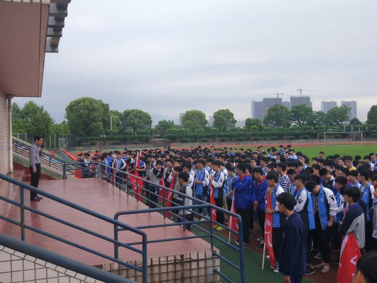春假结束回校的第一个周三,迎着太阳,机电技术系的全体同学在晨跑结束后,参加了在操场举行的升国旗仪式和每月一次的早评活动,早评由盛景东老师主持。