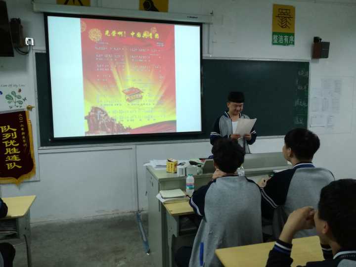 在学唱团歌的过程中,团支书周克华手持歌词,先听两遍完整的原唱,同学们温习了《光荣啊,中国共青团》的歌词和旋律。在团支书的带领下,同学们对照团歌歌谱,一句一句地跟着团支书认真学唱,几遍之后,同学们的歌声也由微弱变得嘹亮,更加自信。活动的最后,全体学员起立齐唱团歌,铿锵有力,激昂高亢的旋律激荡着全班同学的内心。他们在歌声中表达着自己对共青团的向往和热爱。