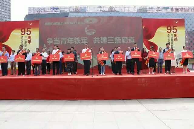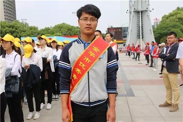 5月3日团市委联合各部门在市人民广场举行“争当青年铁军 共建三条廊道”暨庆祝建团95周年主题活动,表彰了金华市先进青年代表,而汽车服务系高级汽营1303班李翔同学作为金华市优秀志愿者青年代表上台接受表彰。