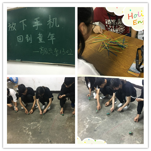 你还记得儿童时玩的游戏的规则吗?和村里的伙伴跳着房子,扔着沙包,别说你没玩过,因为我们是90后!为了让同学们找回阳光快乐的童年,5月4日晚自习,高级汽营1302班在教室里开展了一次别开生面的主题班会活动。“铁壳青蛙”、“挑棍”、“玻璃弹珠”等一出现在讲台上就勾起了同学们满满的回忆,挑起了长长的话唠。