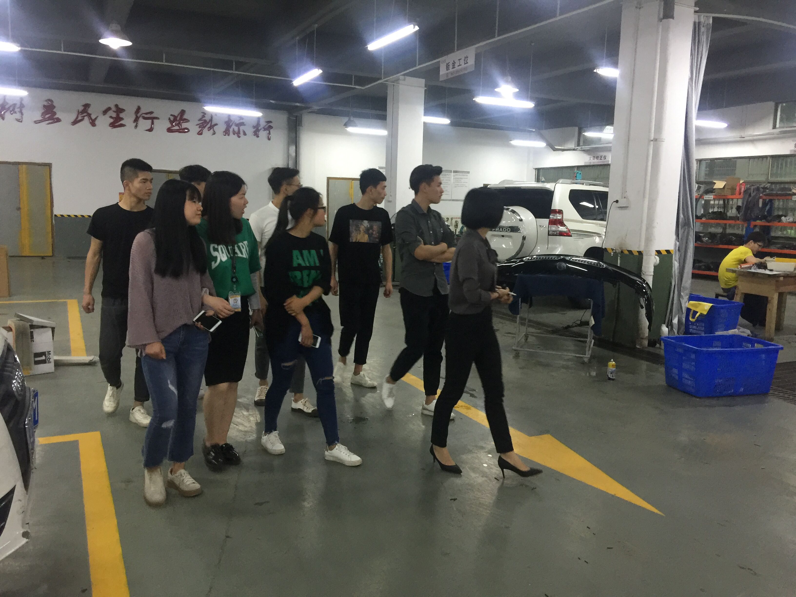 一到店里,董事长亲自接待大家,并邀请学生到董事长接待室给学生上了一堂“如何定位、做人”的课,董事长讲了自己的成功经历,告诉学生要抓住机遇,肯吃苦,不管几岁都不要放弃学习,让学生们对社会有了新的认知,对自己的人生又有了新的目标。经过一个小时与董事长的交谈后,学生们又在学姐的带领下参观了服务顾问SA的接待区、续保专员区、机修工位、钣喷工位、洗车改装工位,吴慧学姐对每一个岗位的工作都进行了详细的讲解,让学生们对不同的岗位有了新的认识,更加明确了适合自己的岗位。