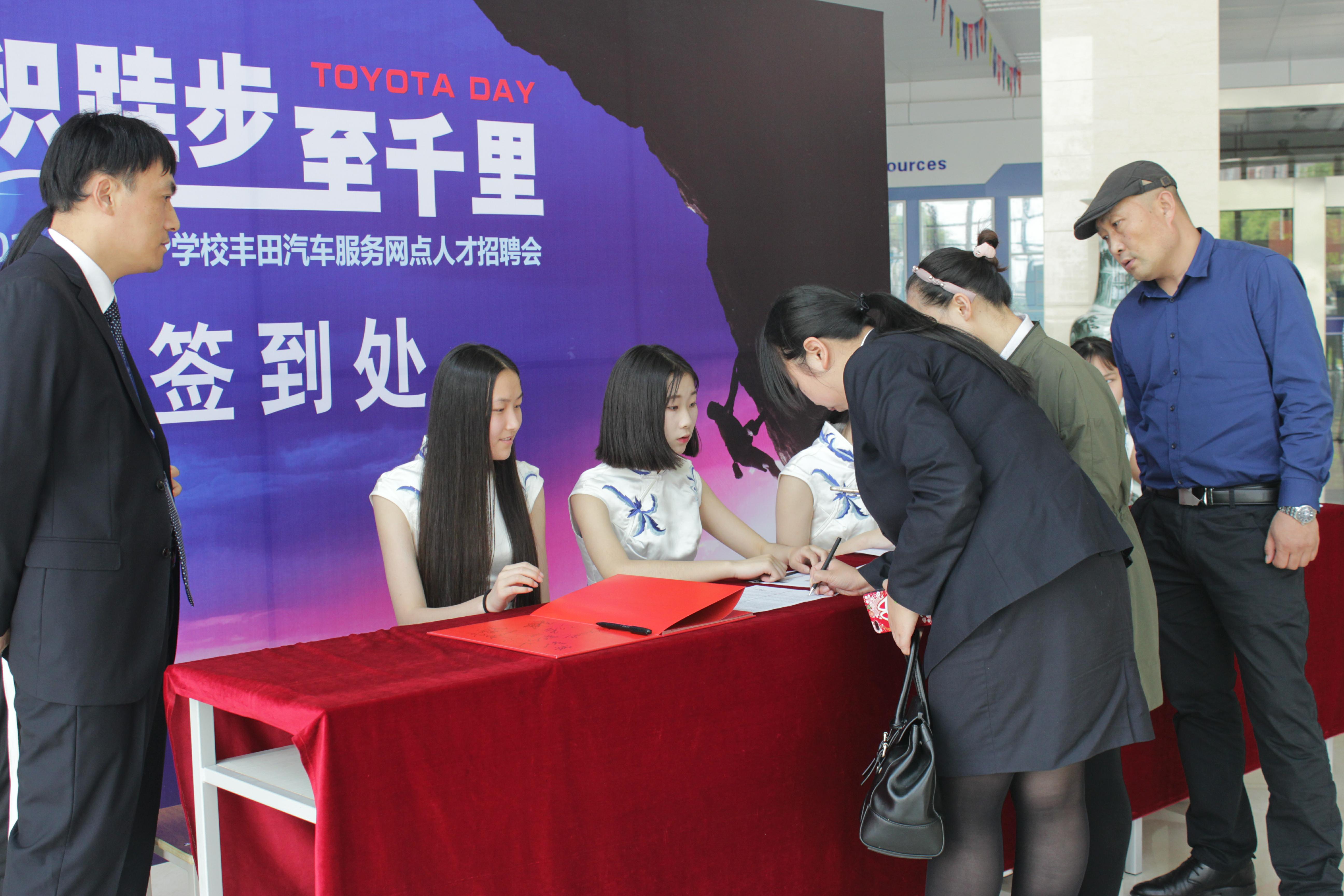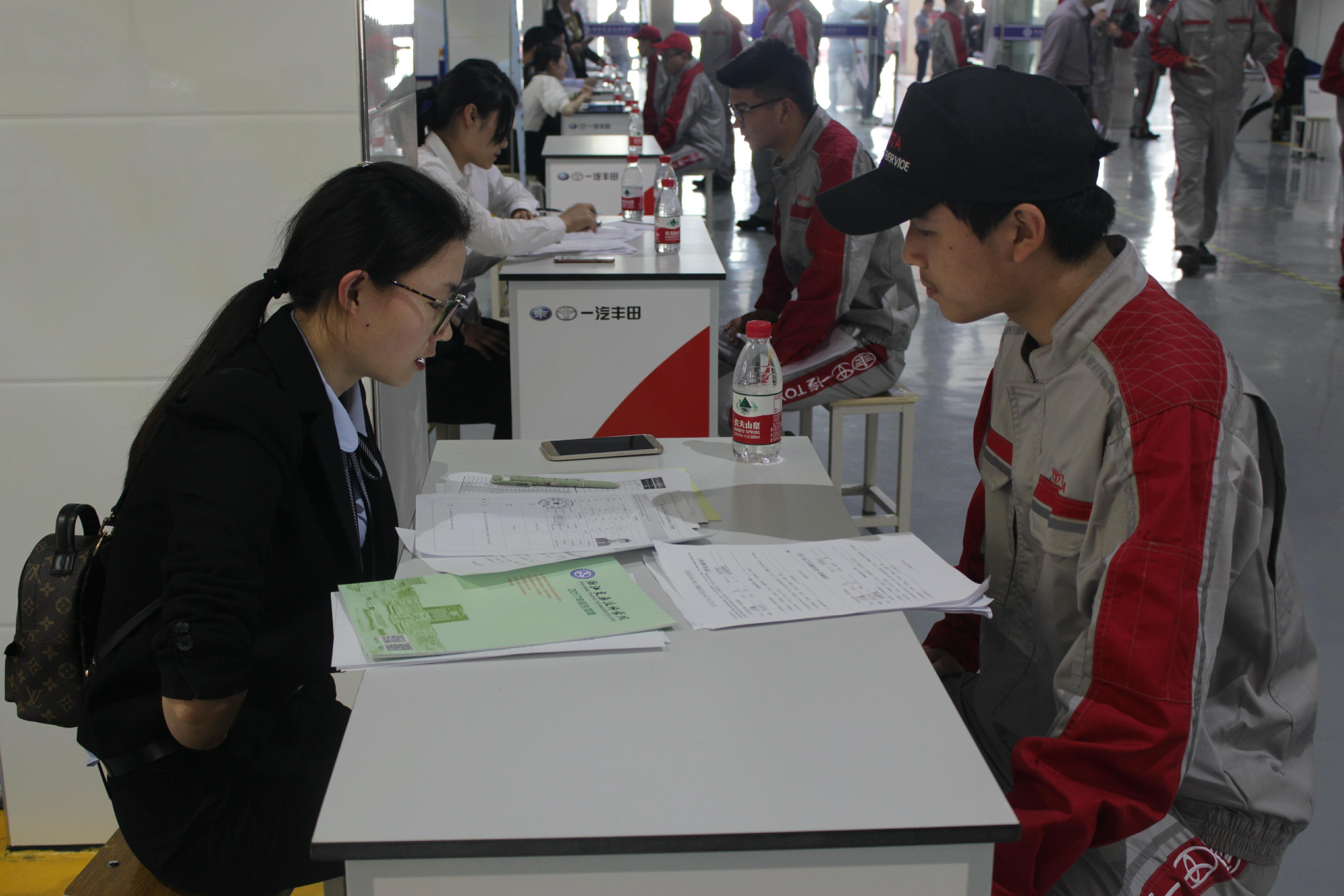 下午1时, TOYOTA- DAY学生现场招聘会在精艺楼B区准时开始,分别进行了丰田班专场和非丰田班专场,26家丰田经销店提供了一般维修、钣金、喷漆、服务接待、销售顾问、仓管等多个岗位。通过面试、复试确认,46名丰田班学生都找到了适合自己的岗位,签约率达100%。随后的非丰田班学生也利用此机会找到了心仪的工作。(汽车技术系 陈跃婷)