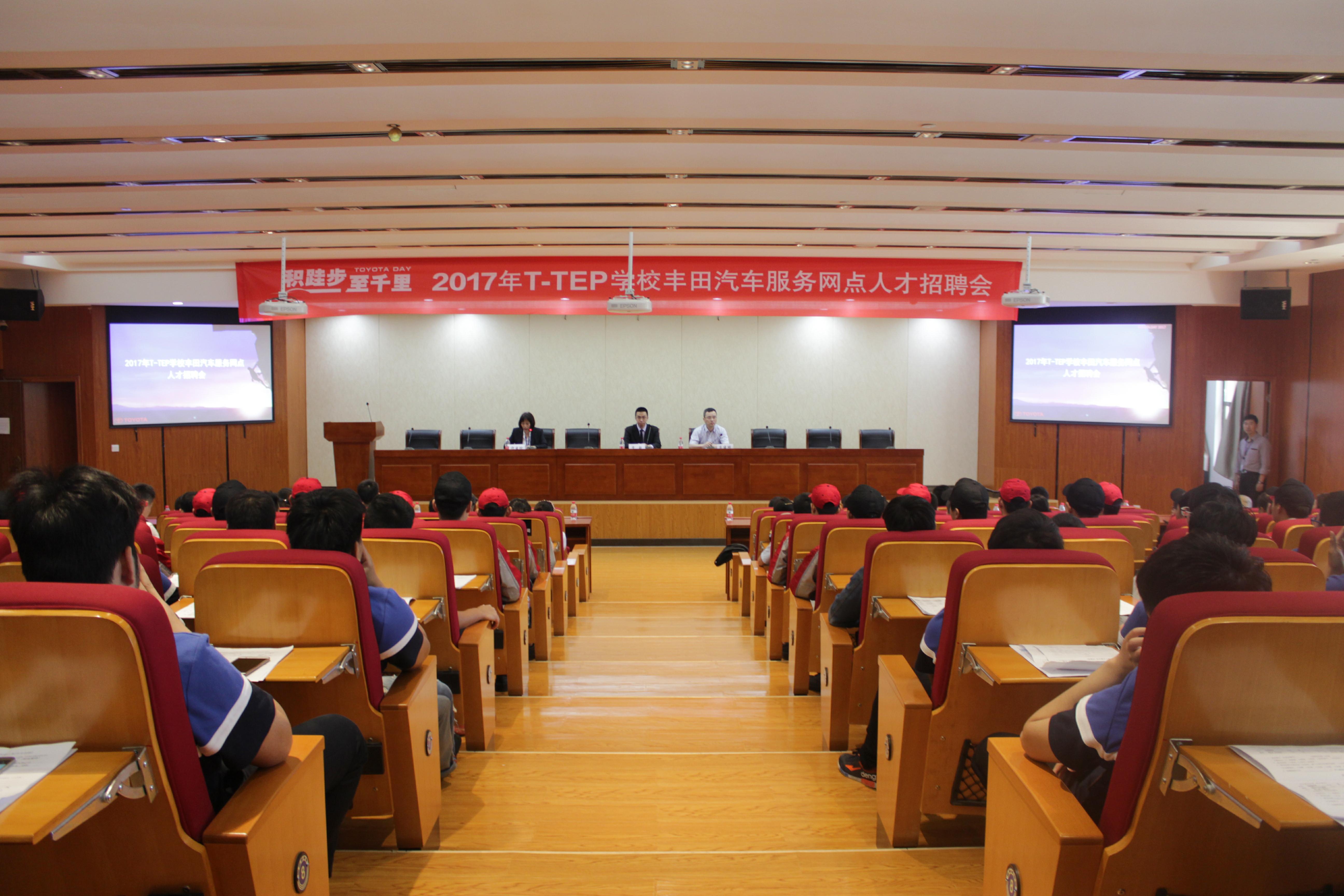5月9日,以“积跬步,至千里”为主题的2017年T-TEP学校丰田汽车服务网点人才招聘会(TOYOTA-DAY)在我院隆重举行,我院T-TEP项目一般维修班24名学生、钣金班22名学生及非丰田班学生参加了招聘会。此次招聘会分两个环节进行,即见面会和现场招聘会。