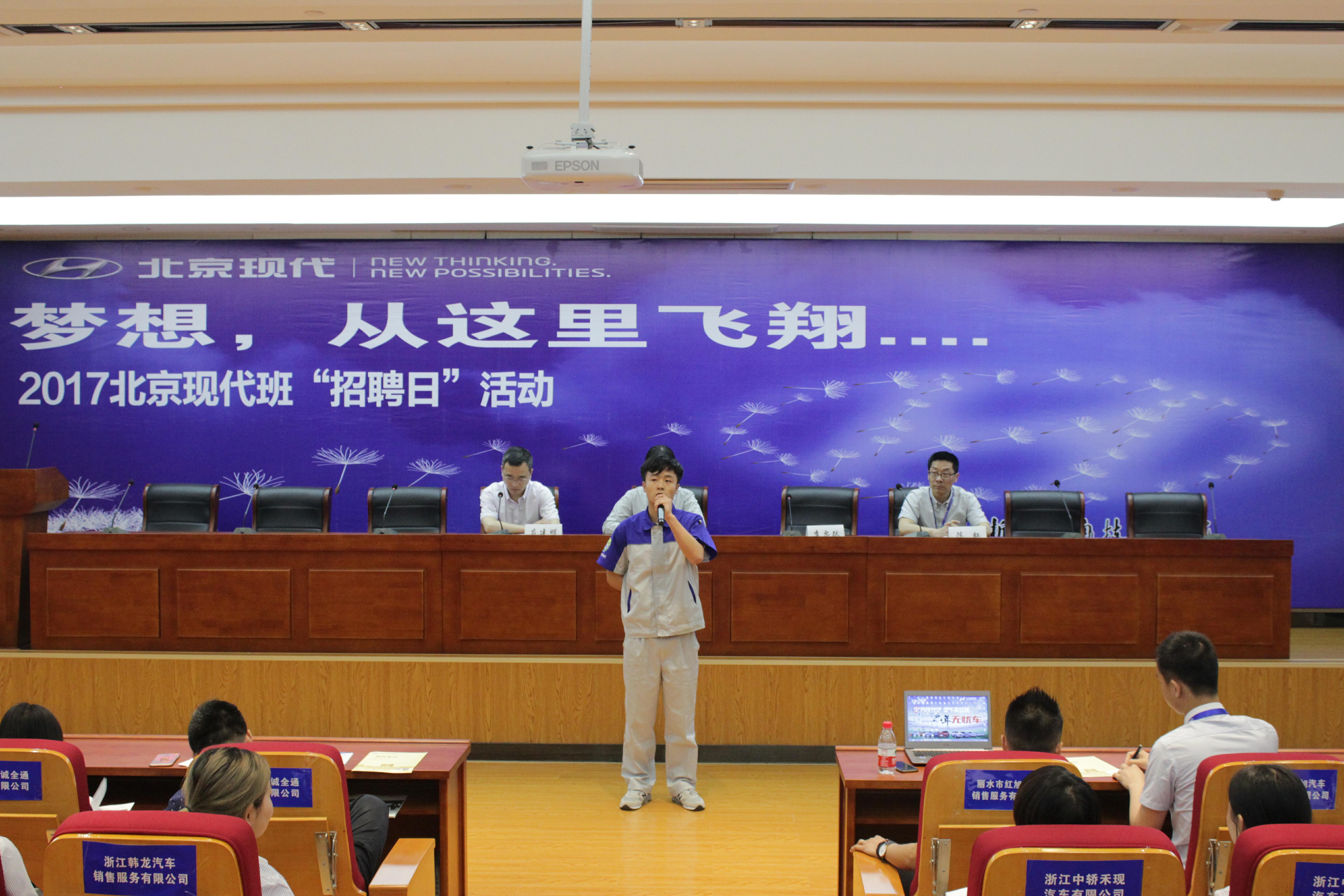 “梦想,从这里开始飞翔… … ”2017年北京现代班“招聘会”活动于5月10日下午在学院精艺楼隆重举行。本次“招聘日”活动吸引了来自全省各地的北京现代销售服务店。招聘会分两个环节进行,即见面会和现场招聘会。