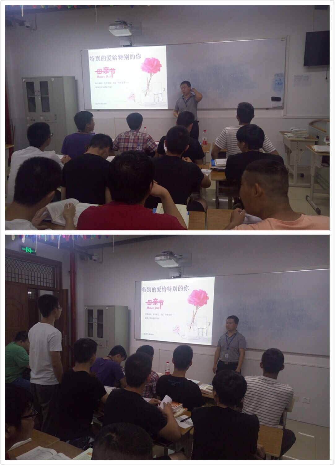 技师1304班结合本班实际情况于5月14日晚自习期间开展了主题为“特别的爱给特别的你”的感恩教育班会。班会由班主任田宝春老师主持,由同学们自由发言在今天这个特别的日子里都以怎么样的方式陪自己母亲度过这个节日。