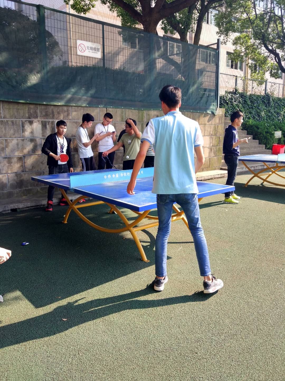 第一轮是淘汰赛,经过抽签分组,采用三局两胜制。同学们在操场上挥洒汗水,充分发挥自己的水平,整个比赛安排的合理、紧凑,有加油助威的、有做裁判的,经过激烈的角逐,最后分出了冠亚季军:分别是徐大威、祝叶辰、邓江号。比赛最后,班主任潘益民老师与邓江号同学进行了友谊赛,场面比分咬得很紧4:4、7:7,同学们都在高喊助威,最后邓江号同学以11:9战胜老师。