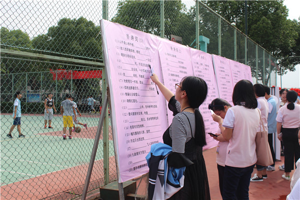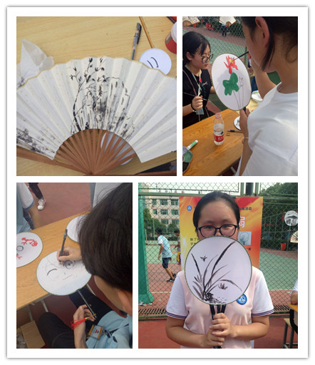 14点30分,各个活动摊位前已排起了长龙,同学们翘首以盼,满脸欢心地“盘算”着能拿到什么奖品。瞧,猜灯谜活动现场人已爆满,大家你一条我一条,争先恐后地竞猜抢答;画纸扇摊位已被围得水泄不通,同学们调色绘画,挥毫泼墨,有在团扇上画梅兰竹菊,也有在折扇上写诗题词;抽陀螺现场,“啪啪”响不停的声音可见其多受欢迎……当然,最引人注目的还属滚铁环活动,很多同学们对这陌生的玩意充满了好奇,再通过展板了解后,个个跃跃欲试,只听一声令下,参与者如离弦之箭向终点径直奔去,偶尔失手,急忙拾起重新返回赛道,不愿耽搁一分一秒,一股志在夺冠的劲头。现场活跃的气氛也吸引到不少老师,他们玩起了滚铁环、跳房子、抽陀螺、踢毽子,过了一把儿时瘾。