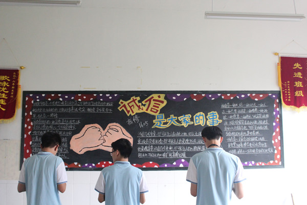 黑板报一直是文明宣传、思想教育的重要途径,本月的黑板报既帮助学生养成了诚实守信的行为习惯,又进一步提升了学生之间的文明交往。(基础部 朱安勇)