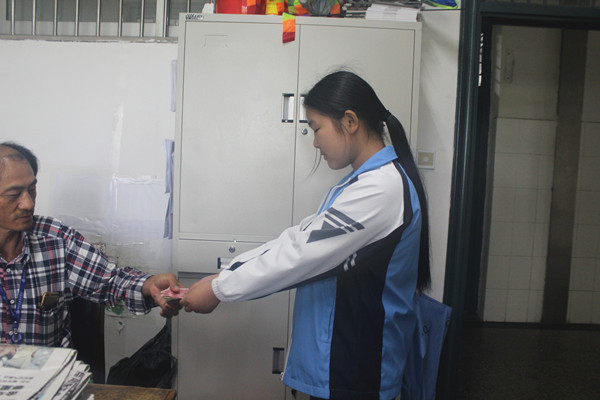6月5日下午,基础部大专财会1502班梁春菊同学在求是楼一楼楼梯口倒垃圾时捡到200多元现金,她没有丝毫犹豫,第一时间将现金交给自己的班主任陈建老师,陈建老师当即竖起大拇指为她点赞。梁春菊同学面对夸奖,挺害羞地说,这已经不是她第一次捡到钱了,200多元不是一笔小钱,希望能早点找到失主。
