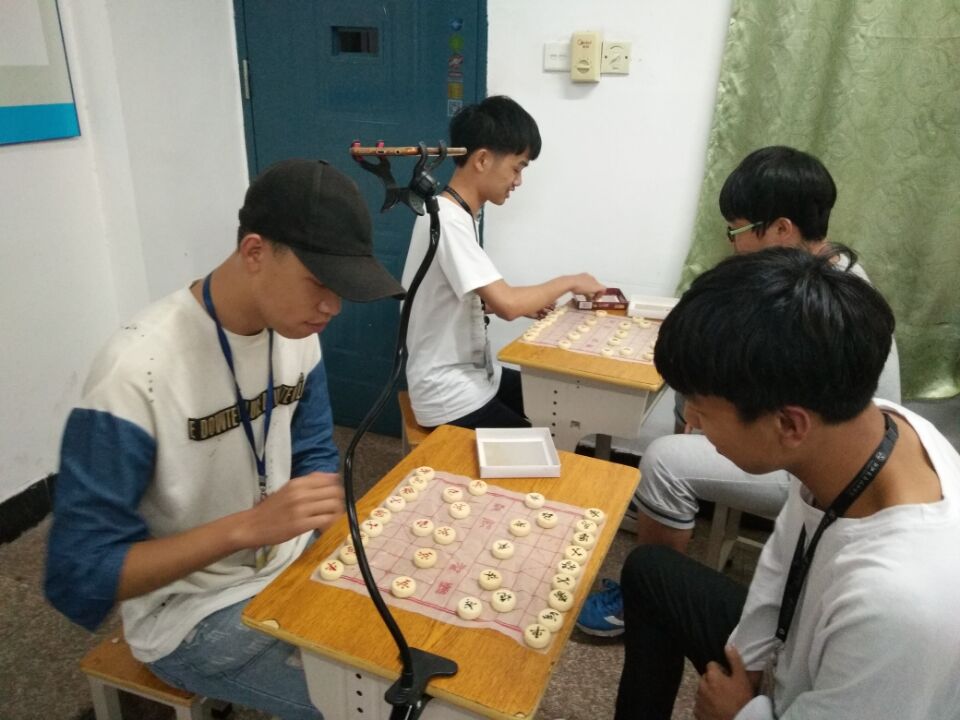 6月13日晚自习,高级数控1501班在教室开展了象棋比赛。班级内有8名同学报名参加了比赛,比赛还采用了目前最流行的观赛形式:直播。同学把比赛的过程进行了拍摄,并投影到班级大屏幕上,不参加比赛的同学通过大屏幕观看了比赛过程。经过几轮角逐,曹震亮同学获得了象棋比赛的冠军。