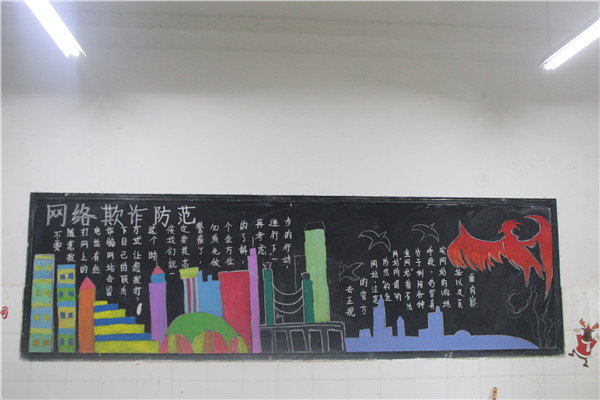高级汽营1501班的班主任金燕说到:“只要是黑板报评比,我们班肯定就拿一等奖,当然我们班级出黑板报并不是为了得奖而出,而是一期小小的黑板报融合了许多教育、警示的功能。”正如苏霍姆林斯基说过:“无论是种植花草树木,还是悬挂图片标语,或是刊板广播,我们都将从审美的高度规划,以便挖掘潜移默化的育人功效,最终连墙也在说话。”是的,黑板报就有这样育人功能,就如本月的“交通事故防范”“网络诈骗防范”黑板报,为同学们敲响了安全预防的警钟,起到了良好的教育作用。也希望各班继续重视黑板报这个知识补充和拓展的第二课堂,这个展示学生才华的舞台,这个群众性的宣传工具。(基础部 叶佳)