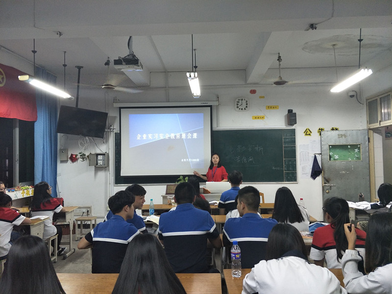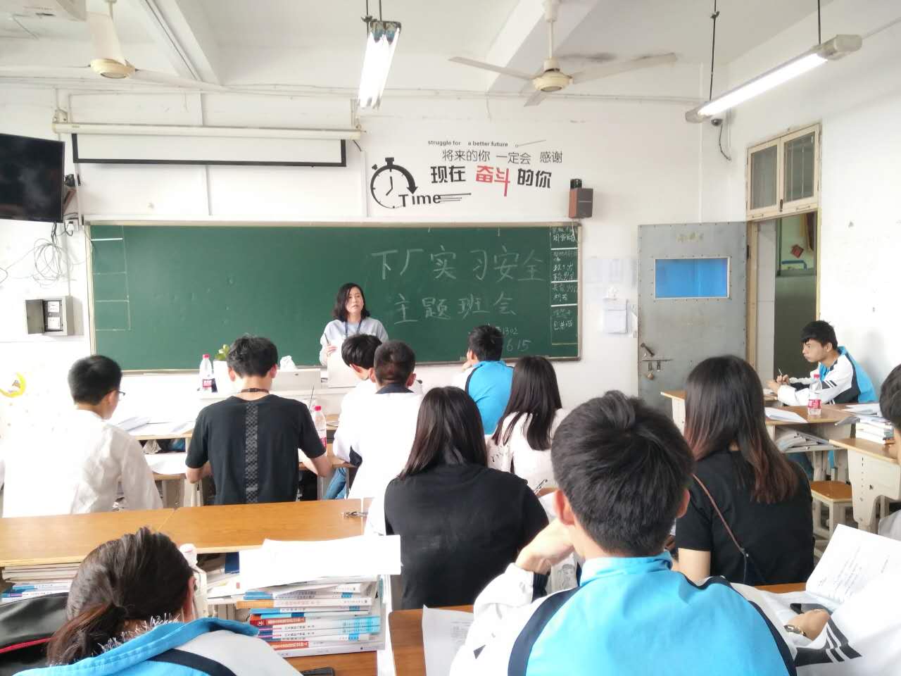 在高级汽营1302班,班主任郑志飞老师要求同学们在实习期间保持联系,离校实习就业期间注意安全,保护自己,拒绝黑车,远离传销。在高级汽营1303班,黄艺苗老师要求大家要按照企业要求,特别是安全防护工作一定要做到位。