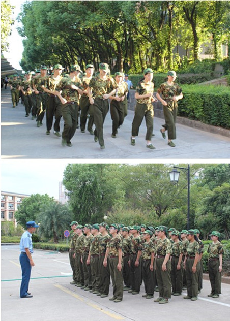 教官们严格要求新生整理军容和端正军姿,不时亲自示范,并手把手纠正基本的动作,同学们在英姿飒爽的教官的带领下认真训练,丝毫没有半点偷懒。