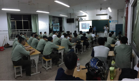 嘹亮军歌携训练激情飞扬,绚丽梦想伴多彩青春起航。9月5日晚,汽车服务系全体新生在教官的指导下学唱军歌,而教官们也毫不羞涩,大方的唱起了《团结就是力量》、《强军战歌》等军歌。
