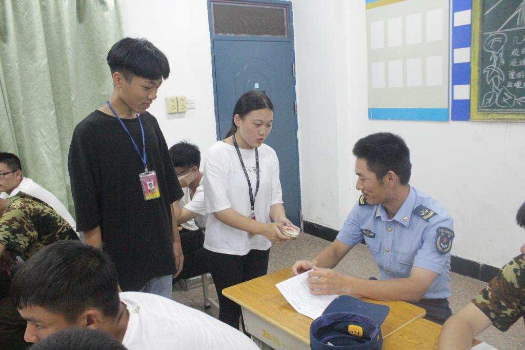 9月8日晚,基础部团学干部前往各军训新生班教室,为全体教官送上润喉糖,感谢他们的辛苦付出。