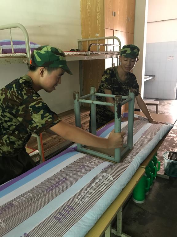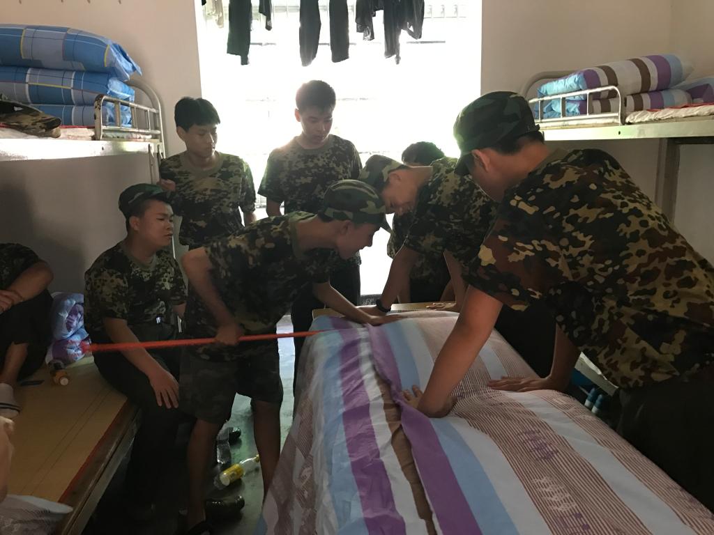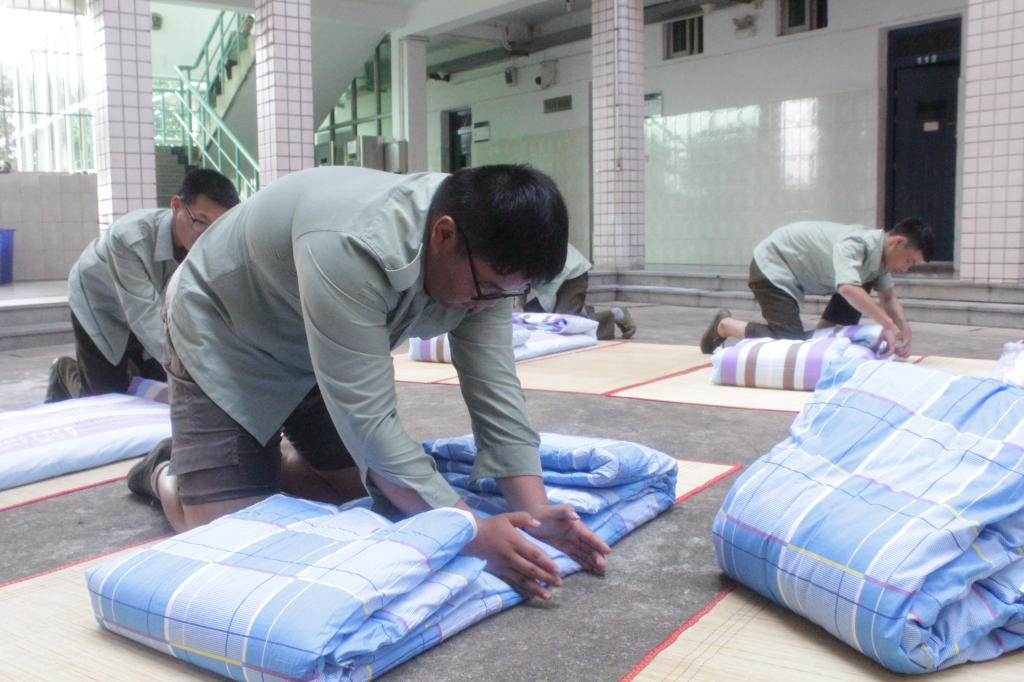 为能在10日学院的叠被子大赛中脱颖而出,基础部新生们每日利用空闲时间苦练叠被功力。