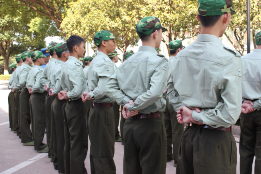 九月的篮球场,在烈日的炙烤下就像一个大蒸笼一样,但二营的将士们依然坚持站着军姿、停止间转法、原地踏步、齐步走行进与立定等训练项目,纵使汗如雨下,仍稳如泰山,坚毅不拔。军训教会了学生特别能吃苦、特别能战斗、特别能奉献的精神,而这对于未受考验的学生来说显得尤为重要。