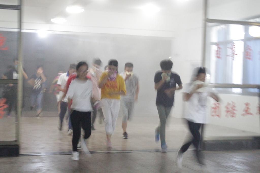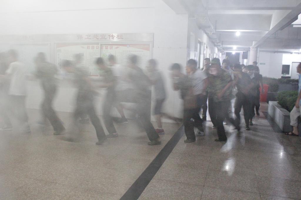 晚自习,基础部新生们先通过校园直播观看消防安全知识讲座,讲座就如何用火用电、如何使用消防器材、如何逃生自救等问题作出了详细讲解。19点30分,警报声响起,浓烟四溢,新生们迅速进入紧急疏散状态,用湿毛巾捂住口鼻,压低身体,按照预定演练路线快速有序地撤出教学楼,到达操场。随即各连队开始清点人数,向上汇报,经统计基础部全体师生全部安全疏散撤离,整个逃生过程紧张而有序。