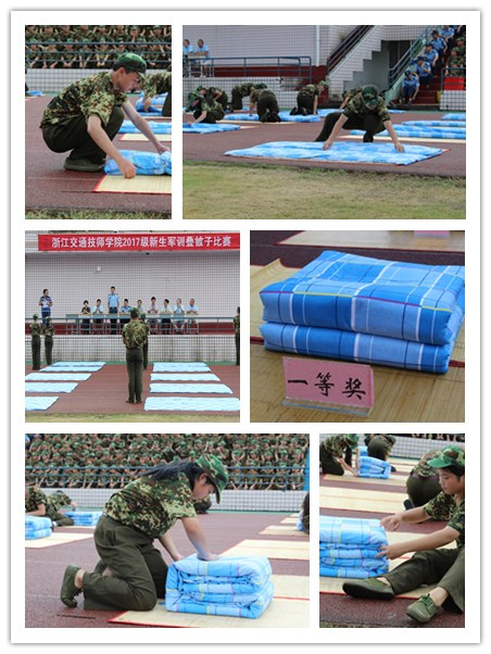 为进一步做好2017级新生军训内务整理训练科目,提高学生内务整理水平,为他们艰苦的军训生活增添点乐趣,9月10号下午,一场叠被子比赛在操场上拉开了帷幕。