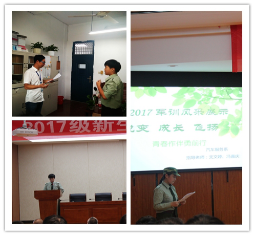2017级新生在学院的安排下,9月11晚自习在精艺楼报告厅开展PPT军训风采展示比赛,由汽车服务系高级汽营1701班陈秀津同学参赛。都说“台上一分钟,台上十年功”,为了本次比赛汽车服务系做足了充分的准备。