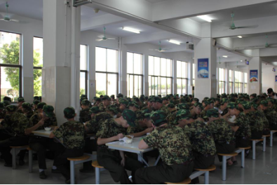 在训练了一个上午后,同学们都已累得四肢发麻,终于,在教官的带领下,大家迈着整齐划一的步伐有序的走进了六号楼食堂,准备用餐。早已饿得发晕的他们见到饭菜后,都眼睛发亮,恨不得冲上去,把那些饭菜一抢而空,但是在没得到教官允许的情况下,大家都忍住了心中的欲望,就如热锅上的蚂蚁。(汽车服务系 冯嘉庆 李美莎)