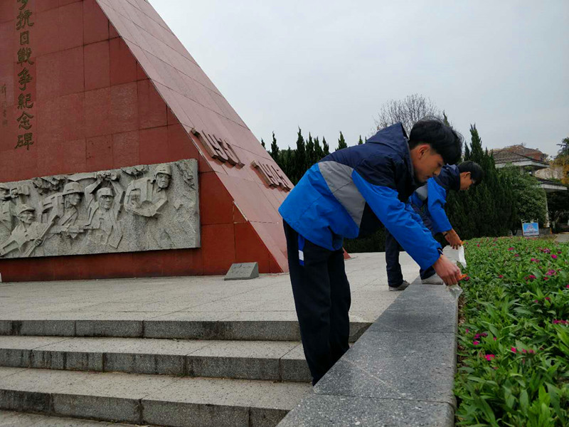 在祭扫过程中,青年学生环顾纪念碑浮雕,认真阅读了金华抗日战争史。同时打扫了纪念碑周边的垃圾,并鞠躬致敬。在纪念碑前,王尔康老师强调:“作为和平年代的一名青年学子,应当勿忘国耻、铭记历史。抗战期间,国人因为抗争,因为自强,才得以改变自己的命运。现在,我们应该牢记历史,不忘使命,将革命先烈的优良精神发扬光大,星火传承下去”。