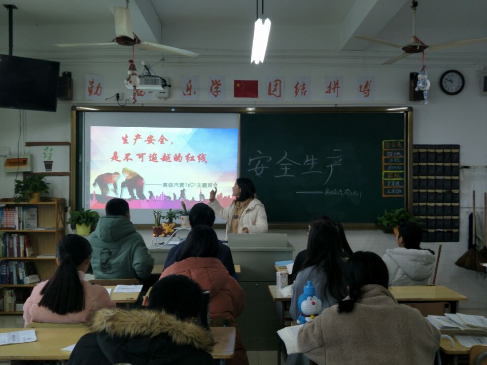 在高级汽营1601班则是通过寝室安全问题进行开展学习,主会人通过投影仪播放出寝室里经常潜伏的一些未知的安全隐患图片。随后根据这些常见的病态现象,主会人引出现实中一些令人触目惊心的案例,以此及时提醒同学们要警钟长鸣,从而让安全生产的弦紧绷,力争规避和杜绝重大安全生产事故的发生。