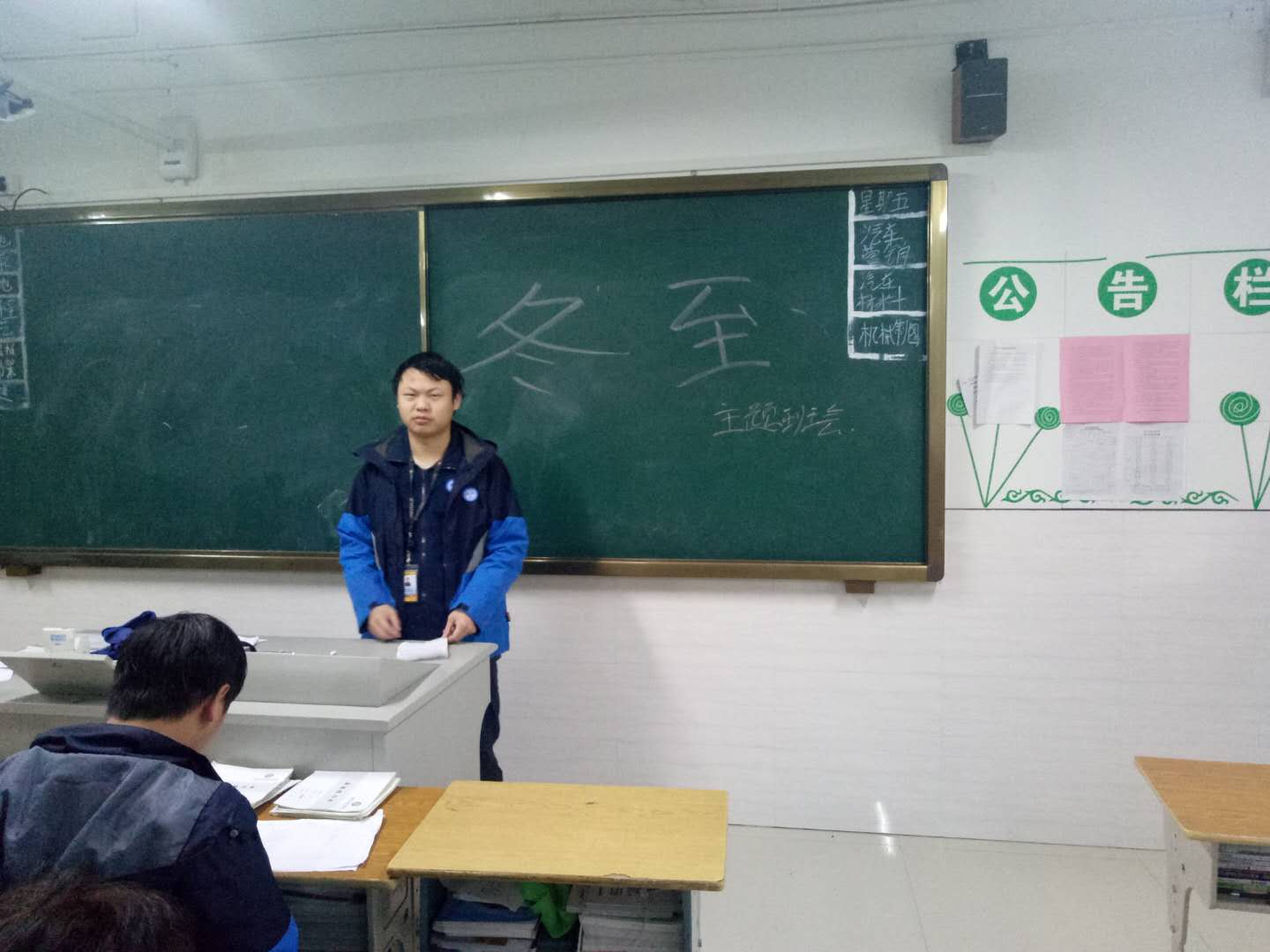 今日0时28分,迎来冬至节气。中国古代非常重视冬至节气,有“冬至大如年”的说法,而且有庆贺冬至的习俗。冬至是一年里黑夜最长的一天,此后,白天慢慢变长。冬至阳生春又来。新的开始,12月21日晚汽车服务系高级汽营1701班、高级理赔1501班、高级钣喷1703班、技师钣喷1601班积极开展冬至节气主题班会活动。