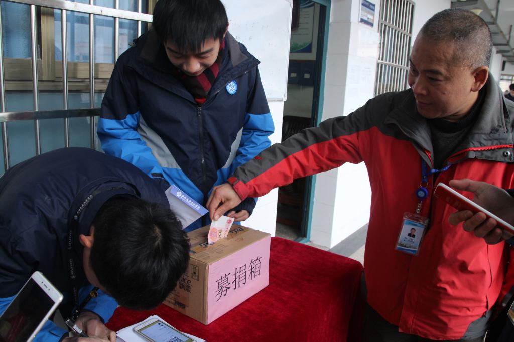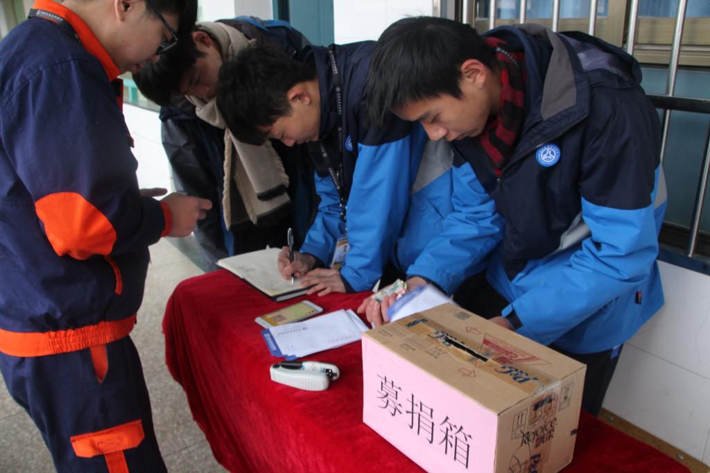 “团结友爱,乐善好施,济困扶危”是我们中华民族的传统美德,捐款救困是我们义不容辞的责任。当我们和朋友在放声高歌时,当我们和亲人在共享天伦时,当我们努力奋斗在畅想人生未来时,你可曾想过一个柔弱的生命正躺在医院的病床上,与灾难、病魔殊死搏斗。1月8日,行知楼408门口,汽车技术系学生为郑博文同学爱心捐款。