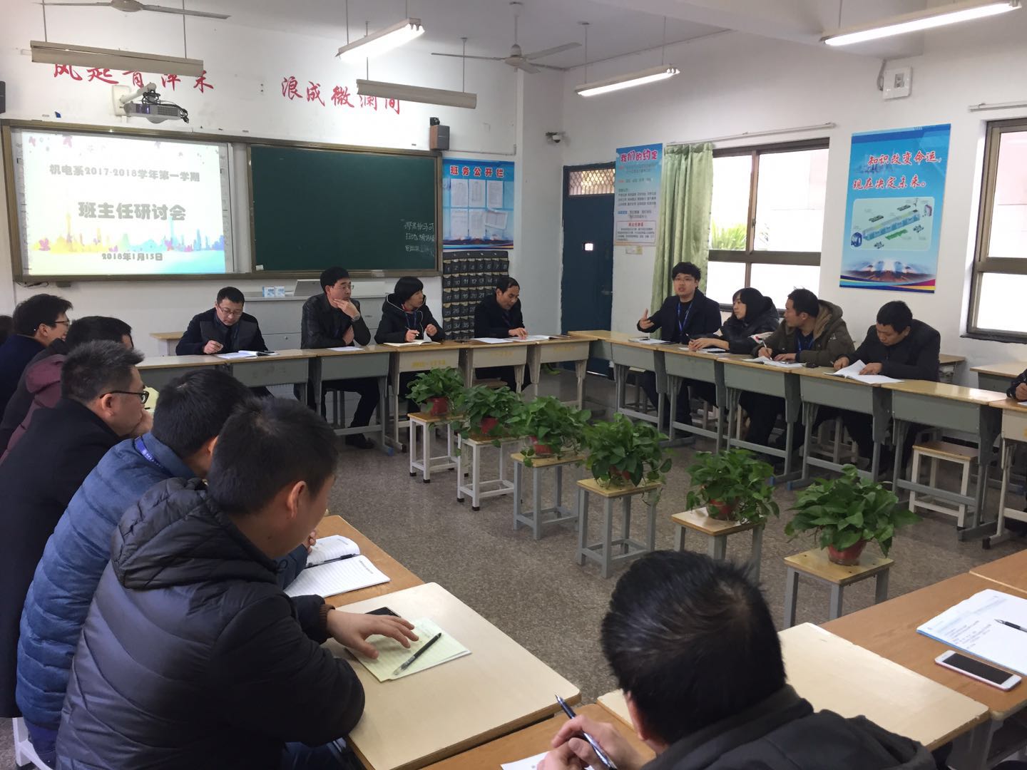 为了进一步加强班主任队伍建设,提升班主任的工作水平,1月15日下午,机电技术系在行知楼101开展了班主任研讨会,学生处处长叶智勇、机电系主任宗冬芳、傅凯、盛景东以及全体班主任出席了会议。
