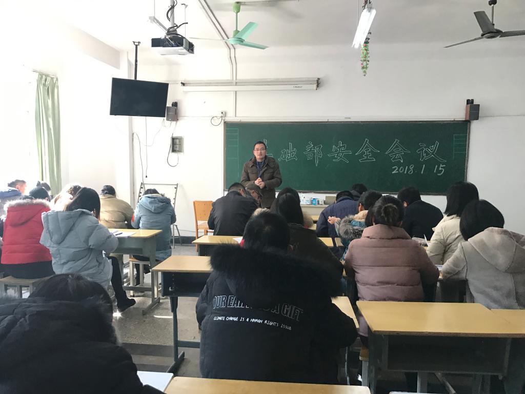 为增强教职工及学生的安全意识,落实好学期末的安全工作,2018年1月15日下午,基础部在求203教室召开安全会议,由张震新副主任主持。