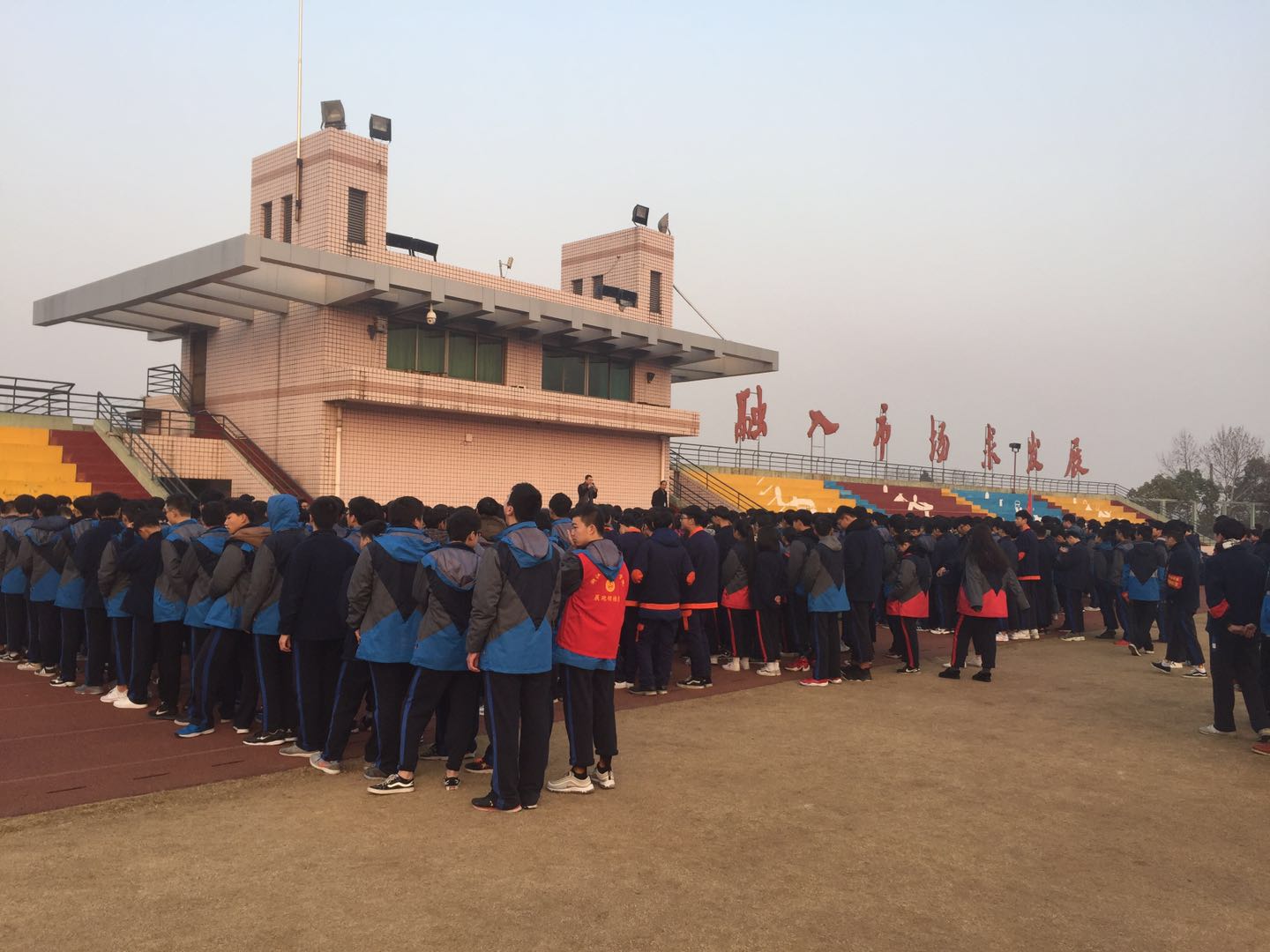 1月17号早上跑操结束后。机电技术系全体同学在操场参加了系部的早评活动。早评由盛景东老师主持。