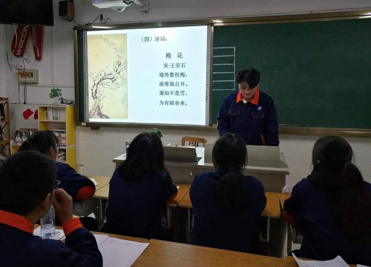 在高级汽营1701班曹成旭同学带领着同学们寻找关于大寒的最美诗词。有《大寒吟》、《村居苦寒》、《回次妫川大寒》、《元沙院》并朗读了这些诗词,同时通过大寒节气的一幅幅图片,让同学们感受大寒寒冷的美。