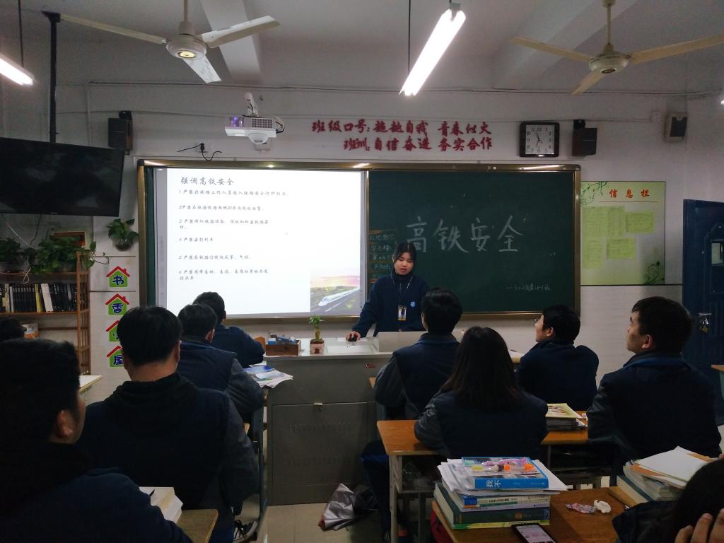 为了同学们的身心健康与生命安全,为了大家过一个愉快而又充实的寒假。杜绝假期期间学生一切非正常事故的发生,汽车服务系各班级积极围绕“乘高铁安全”、“用电安全”、“外出旅游、家庭防火安全等易发的安全问题对学生进行放假前的安全教育。切实加强春节期间安全教育,增强学生安全防范意识。