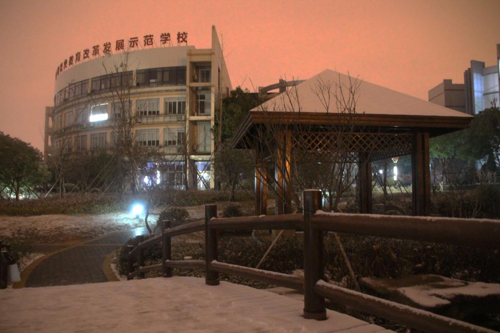 晚上的雪充斥着一种神秘安静的气息,显得校园是如此的孤寂,置身其中感觉世界都静止了。白天的雪是那么纯净无暇,仿佛一幅画卷般呈现于眼前,玉树琼枝,被雪花盖住的花草,纷纷努力探出头来。如此美丽冻人的天气,相信你们已经沉迷于雪,无法自拔了!