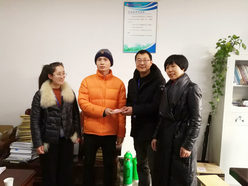 2月1日,机电技术系系主任宗冬芳和党支部副书记傅凯为我系毕业生董卫庆送上温暖。