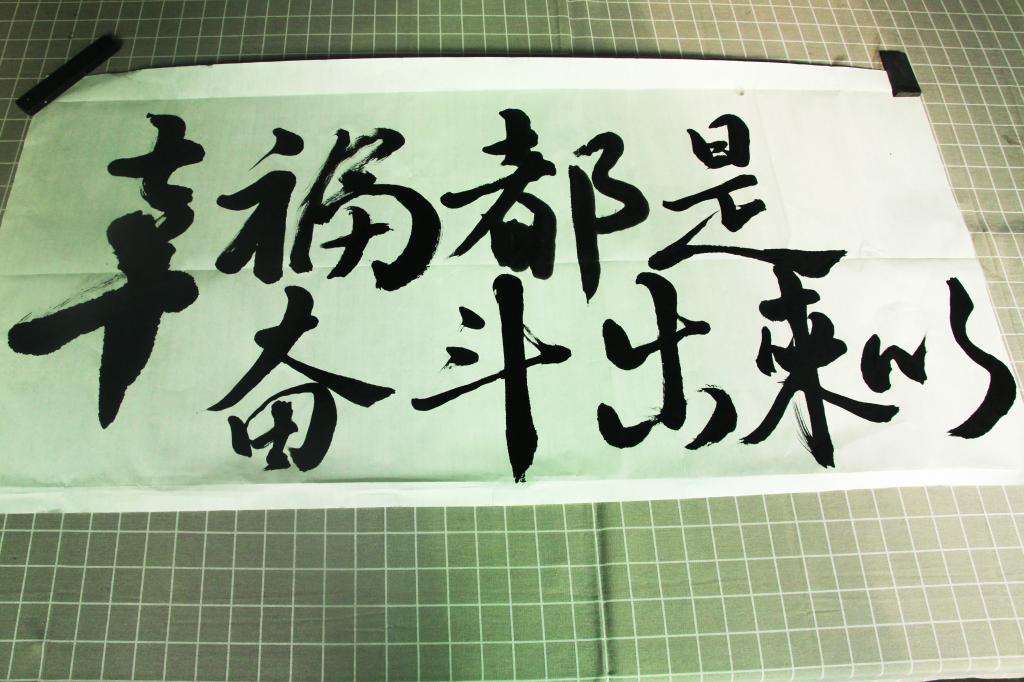 3月13日,学院婺源书画社成员郭子安同学的书画作品“幸福都是奋斗出来的”,以笔墨的形式关注“两会”。