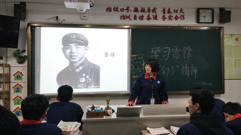 在高级钣喷1701班、高级钣喷1702班、高级钣喷1703班是通过播放《离开雷锋的日子》来学习的,该影片讲述的是作为雷锋最亲密的朋友乔安山,由于一次任务意外成为雷锋牺牲的直接“肇事者”,虽带着终生挥之不去的遗憾和沉重的包裹,却依次选择沿着雷锋足迹去完成雷锋未尽的事业。