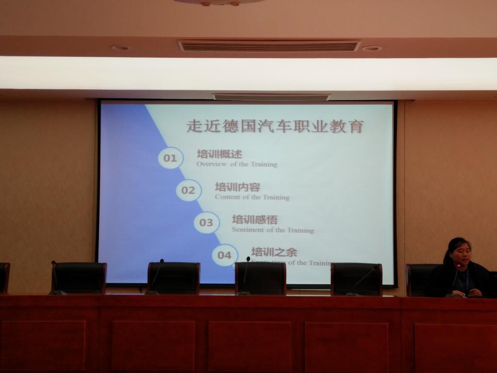 德系车之所以被大家信赖是因为其坚实耐用的材质、精益求精的制作工艺以及前瞻领先的科技。2017年12月至2018年3月我系宋墨老师前往德国哈勒手工业协会职业培训中心进行了为期三个月的培训。3月23日下午3点,汽车服务系在学院精艺楼一楼多功能报告厅组织开展“宋墨老师德国培训分享会”,全系教职工参加。
