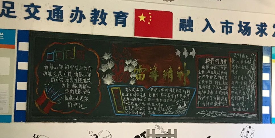 三月,是一个鸟语花香,春色满天的月份;三月,也是一个纪念雷锋同志,学习雷锋精神的月份。为进一步弘扬雷锋精神,为营造文明、助人为乐的校园气氛,机电技术系团总支面向系部各班级,开展了“书雷锋,画新风”为主题的黑板报评比活动。