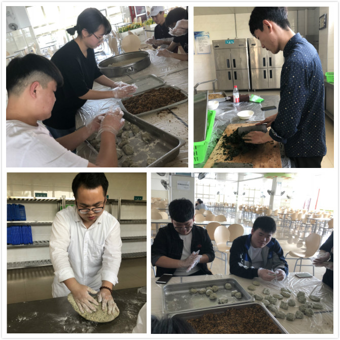 和面、调馅、团青团……党建工作小组的同学们分工合作、热情高涨、忙的不亦乐乎。来自不同县市地区的同学们用心包出属于自己家乡形状的清明团子,尽管有些清明果外观并没有那么赏心悦目,味道也没有想象中美味,但无一不饱含浓浓的家乡的味道。