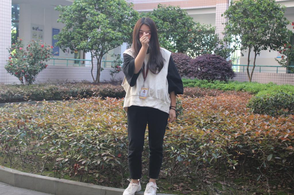 此次活动每个班级都十分踊跃的报名,参赛的选手在门口排着整齐的队伍。最先进来的是三个男孩,他们脸上略带着一些羞涩的粉红色,不好意思地相视而笑。接着是一对活跃的女孩,她们站在小路上,互相不停地逗弄,逗得对方露出了灿烂的笑容,而下面这一对女孩却截然不同,十分腼腆,坐在台阶上,脸上出现了淡淡地微笑。微笑是一种语言,一种隐形的语言,但不论什么时候都要记得微笑。