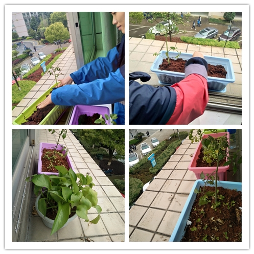 在高级理赔1501班,在班主任郑志飞老师的带领下同学们种下“西红柿”、“芹菜”,在种植过程中同学们认真的培土、移植,每个人的蔬菜种植的都非常漂亮,还用不同的图案装饰了自己的花盆,为自己的小菜园做点缀。
