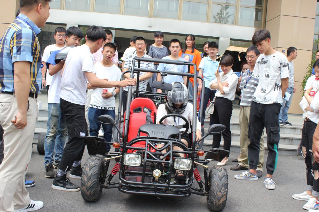上午9点我系学生家长代表连续到达育才楼207教室,在参观前系副主任贺红光老师、系学管干事支文婷老师分别对系部建设、学生干部培养等方面做了简单的介绍,贺主任感谢各位家长百忙之中来参加校园开放日活动,同时也感谢班主任的辛勤付出。随后在贺主任的带领下家长们分别前往学院校史馆、学院第二实训基地、精艺楼汽车实训中心进行参观。在参观学院校史馆的过程中,家长们对学院历史、建设有了一定的了解,随后前往学院第二实训基地,抵达实训基地后家长们被实训环境、专业的教师团队、先进的实训设备所震撼,纷纷表示自己的孩子在这里肯定能够学好技术,最后前往学院精艺楼汽车实训中心,在精艺楼大门口各位家长就被由学院汽车协会同学们自造的“卡丁车”所震撼,据了解,“卡丁车”由学院各系学生自主研发一只队伍,这里聚集着汽车爱好者,有专门的老师指导。随后进入大厅,家长们观看了汽车技术系同学们给家长们带来一段舞龙表演。家长们纷纷被舞龙表演所震撼。