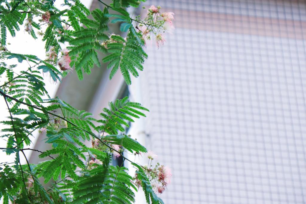 夏季时合欢花争相开放的季节,翠碧摇曳,
