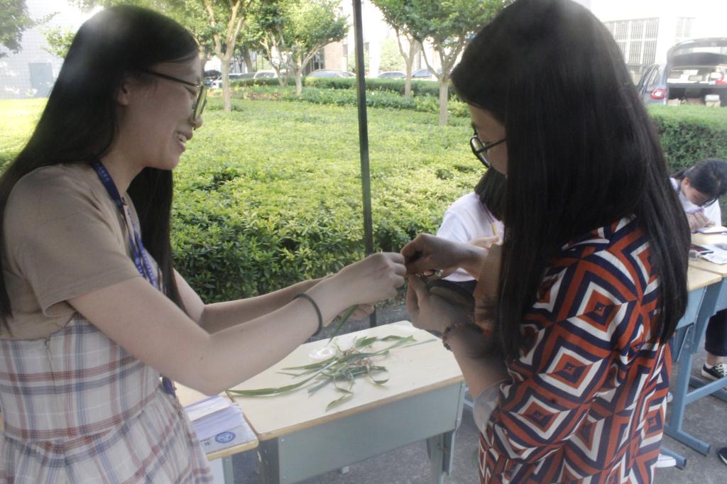 印着毒蛇、蝎子、蜈蚣、蟾蜍、壁虎图案的五毒饼,“可怕”的外表下却是香甜可口的美食,对于这闻所未闻的传统糕点,来往师生们无不产生了浓厚兴趣,很快就被抢购一空;斗百草是古时人们结伴采药时常进行的一种游戏,逐渐演变成端午节的习俗,也有不少老师同学对此感兴趣,想要斗上一斗;艾草和菖蒲散发着浓烈香味,这两味中草药可以驱除蚊虫的功效使得它们成为抢手货,基础部团学干部也按照传统习俗将它们悬挂在求是楼各办公室的门框之上。