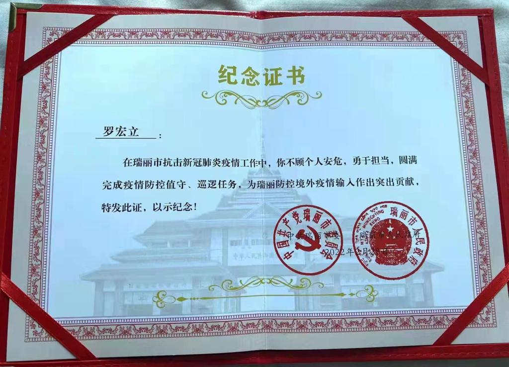 如今,罗宏立同学仍坚守在防疫一线,为全瑞丽市乃至全国人民的安全和健康保驾护航,用行动实践了自己的社会责任,在他身上体现出来的奉献精神值得每位同学学习!(汽车技术系 童佳瑜)